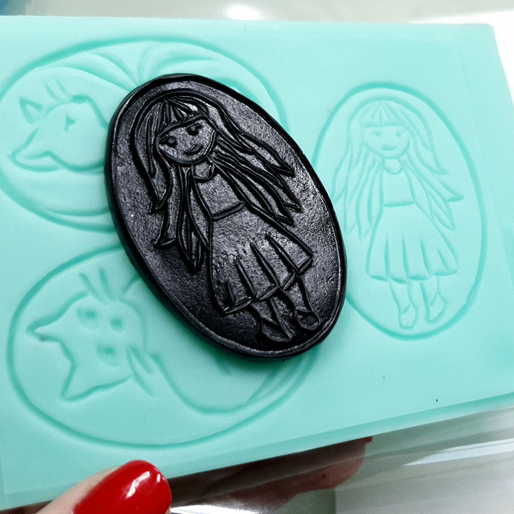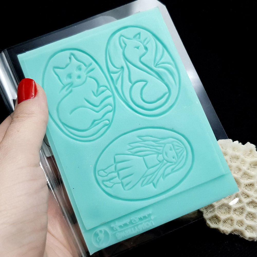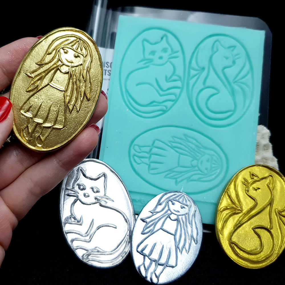 Cats and a Girl - Cloisonné Enamel
