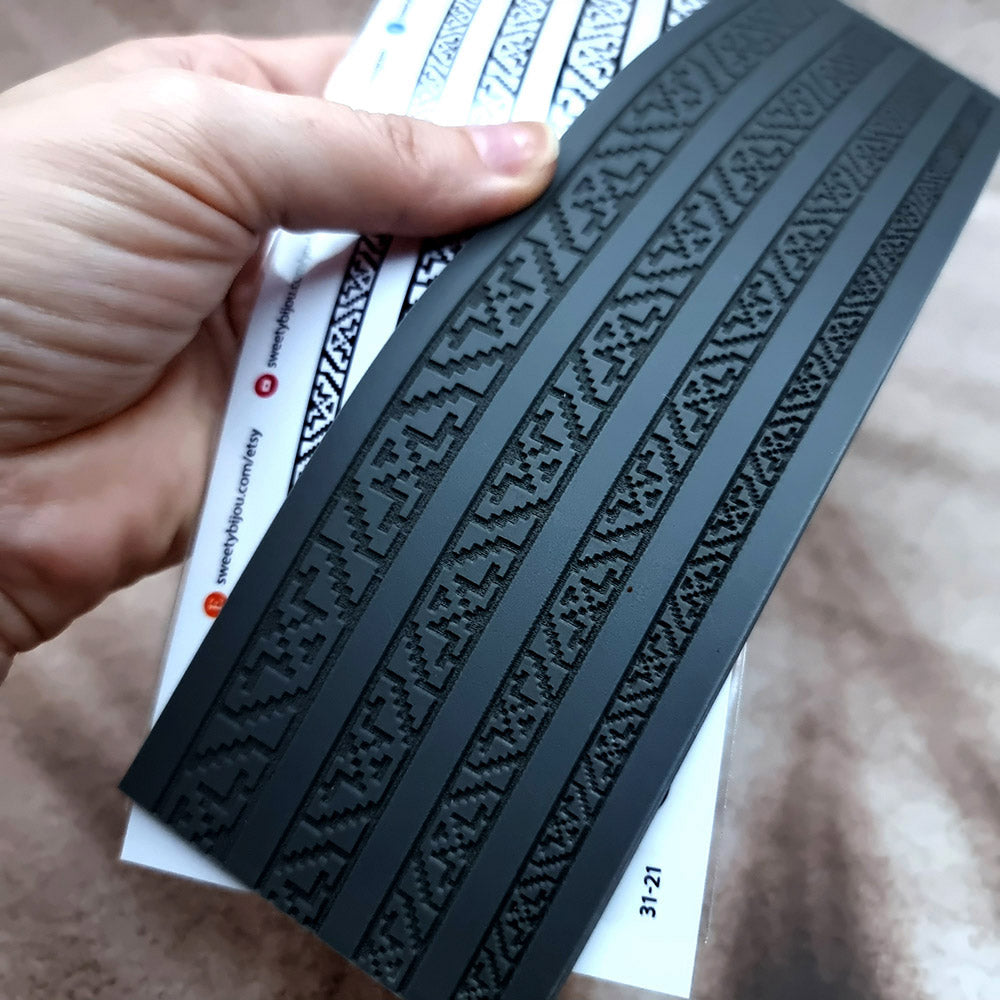 Made from high-quality rubber, this texture sheet is created to ensure that the depth and clarity of the traditional Ukrainian patterns are faithfully imprinted onto polymer or metal clay. This allows jewelry makers to produce pieces that are not only visually striking but also resonate with the cultural significance and artisanal spirit of Ukraine.