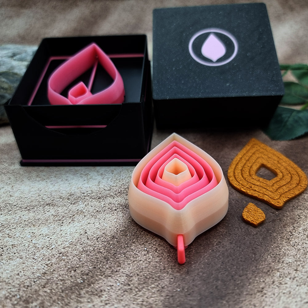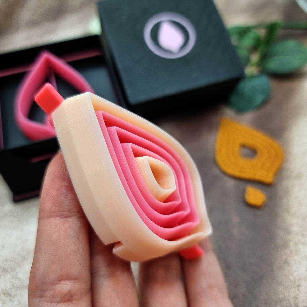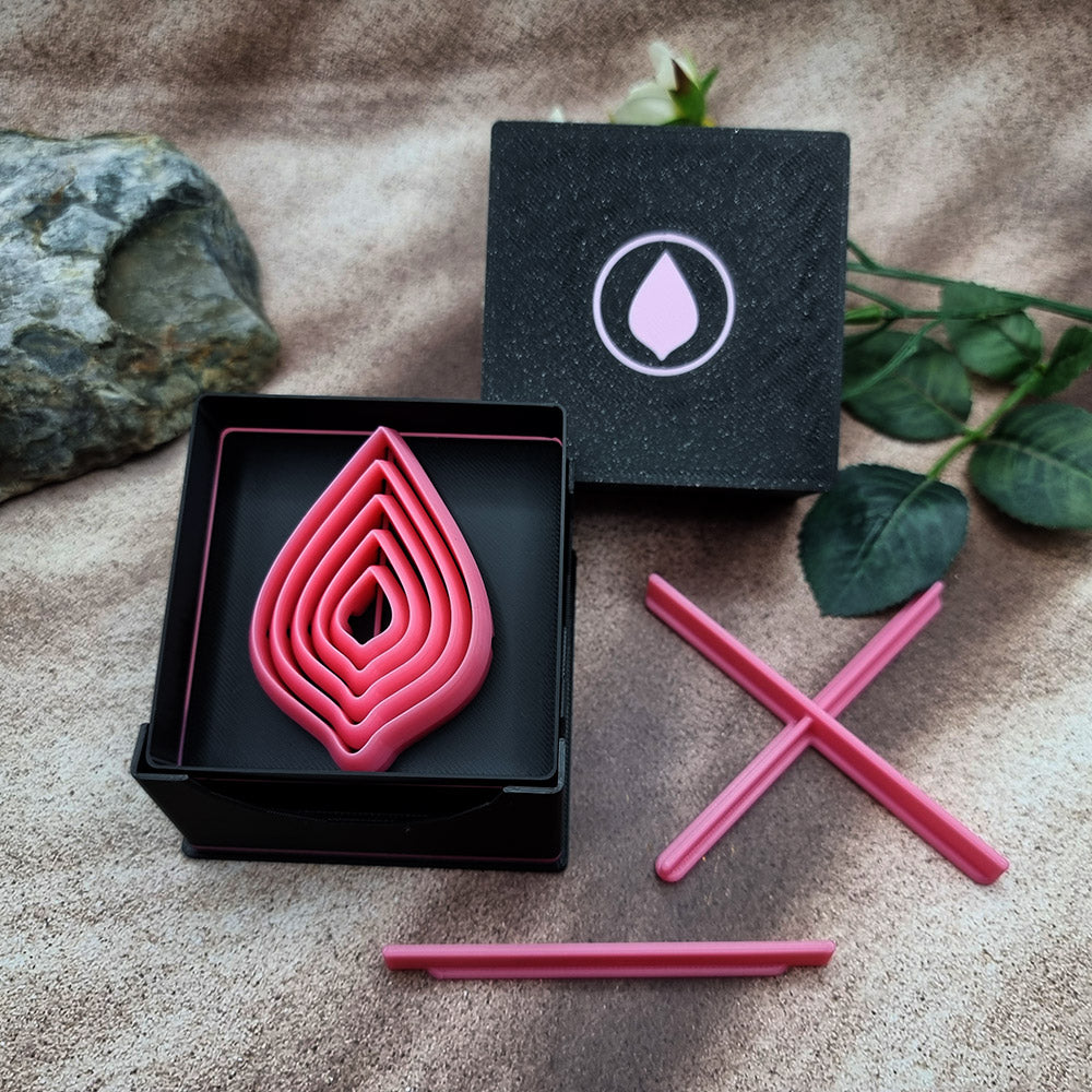 🔹 Used on its own, the pink cutter functions just like the Beige version, allowing you to cut out consistent, well-defined shapes with minimal effort. It’s ideal for creating base elements or uniform decorative pieces from polymer clay, metal clay, and other soft materials.