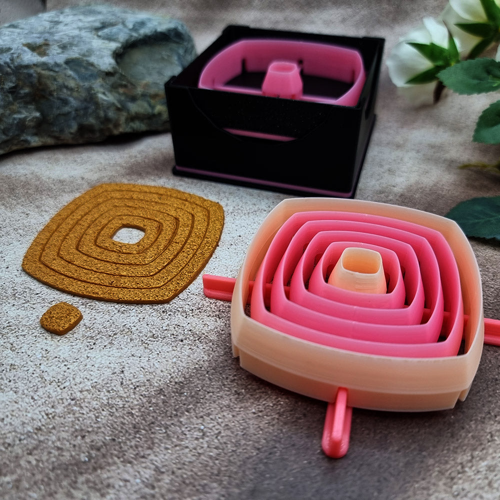 🔹 Used on its own, the pink cutter functions just like the Beige version, allowing you to cut out consistent, well-defined shapes with minimal effort. It’s ideal for creating base elements or uniform decorative pieces from polymer clay, metal clay, and other soft materials.