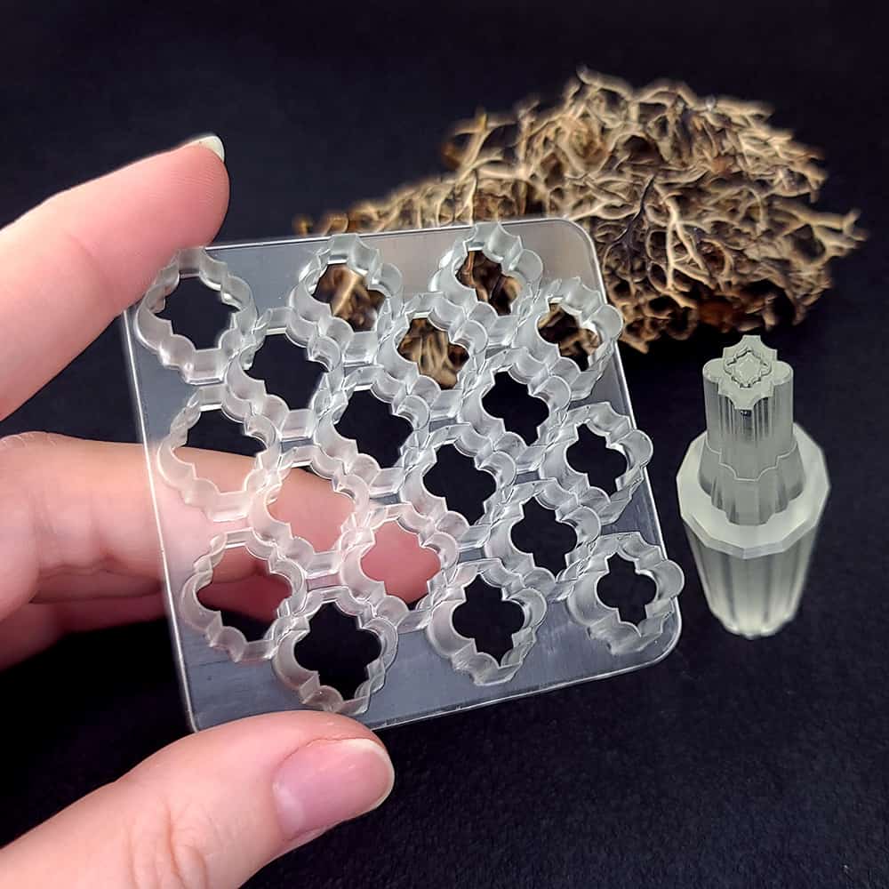 Sunrise in Marrakech cutters have ideally streamlined shapes to ensure your creations have even edges without additional post-processing. The cutters' surfaces are incredibly smooth, so you no longer have to clean them from the remains of polymer clay. To ensure maximum accuracy, each cutter is created from high-quality, innovative, transparent material, which creates a very thin cutting edge.