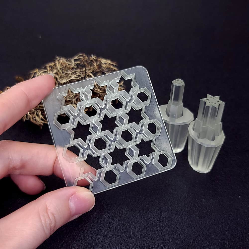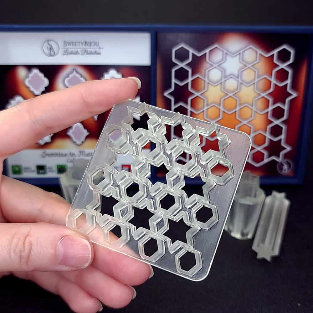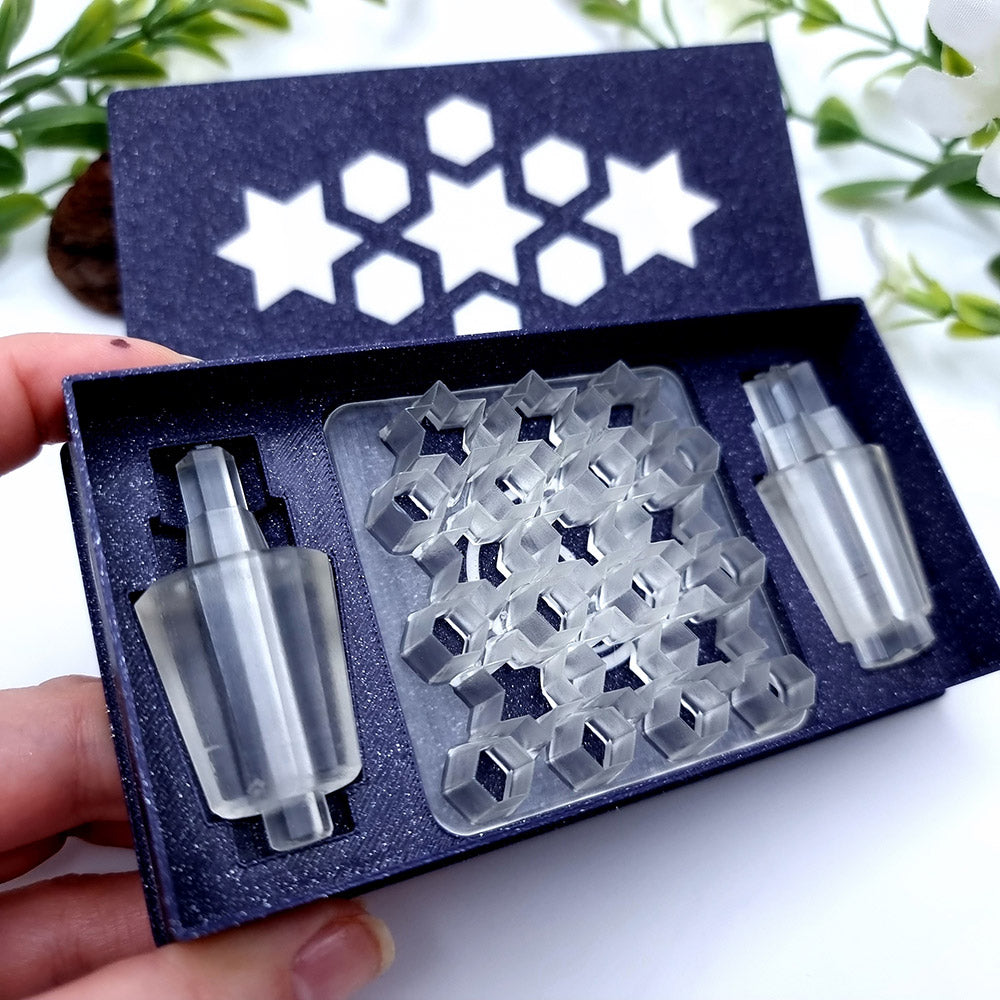 Sunrise in Marrakech cutters have ideally streamlined shapes to ensure your creations have even edges without additional post-processing. The cutters' surfaces are incredibly smooth, so you no longer have to clean them of the remains of polymer clay. To ensure maximum accuracy, each cutter is created from high-quality, innovative, transparent material, which creates a very thin cutting edge.