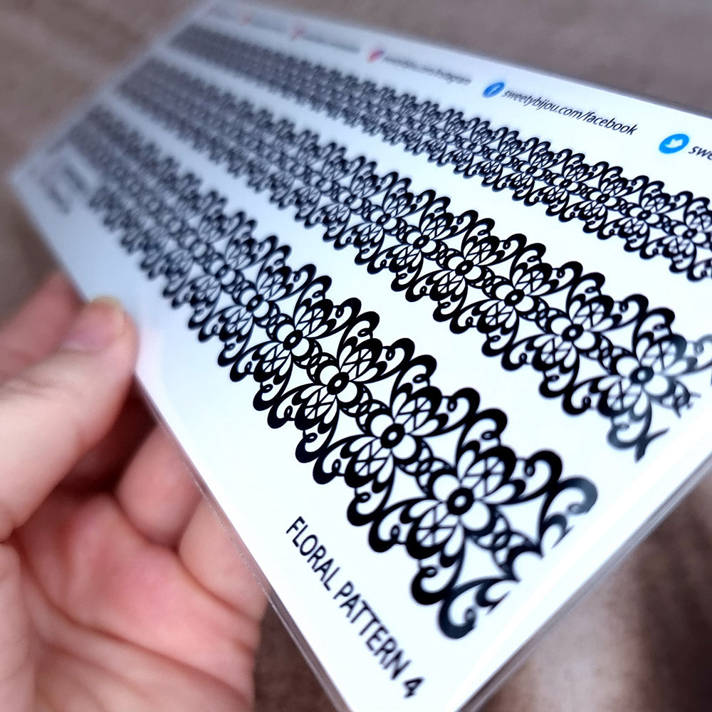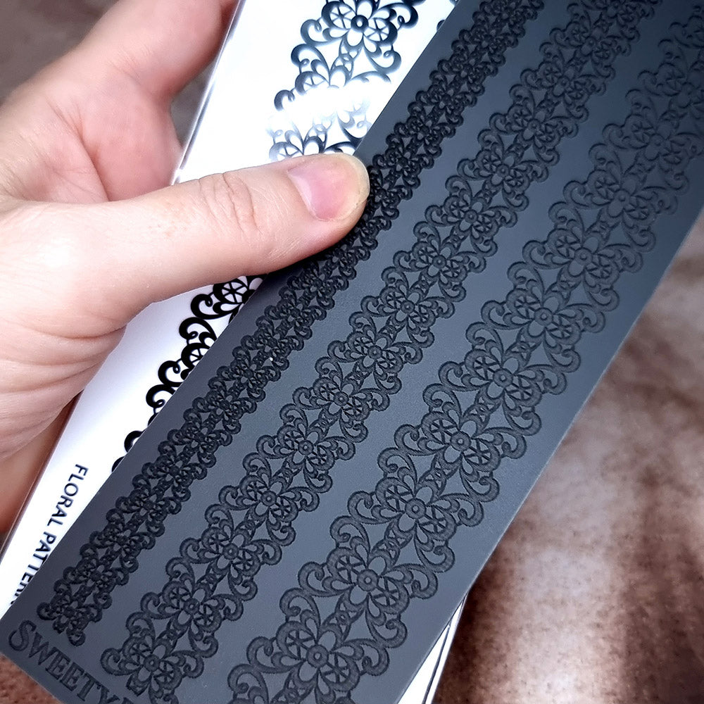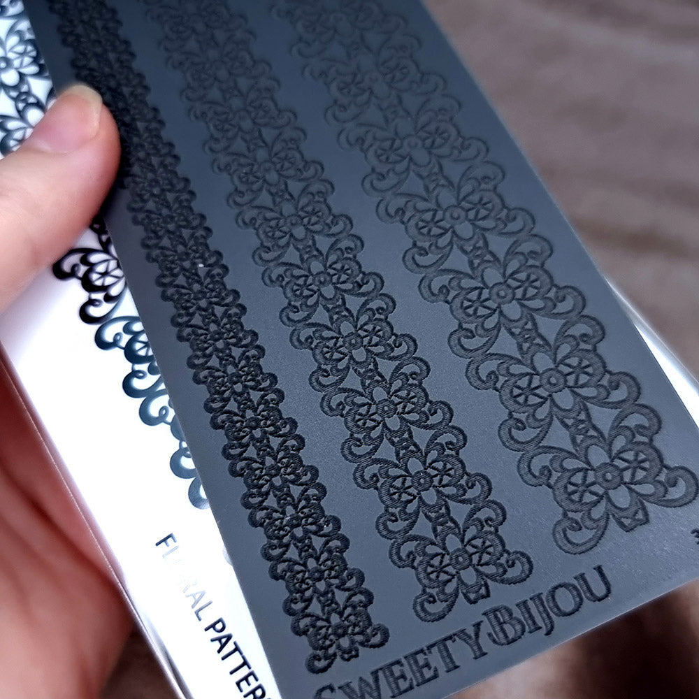 The "Floral Pattern" rubber texture sheet exudes a sense of Victorian elegance, perfect for the jewelry maker who desires to bring a touch of classical beauty to their work. This design features a dense, ornate array of floral elements, reminiscent of a vintage lace trim. Each flower is intricately connected by delicate filigree, creating a continuous and elegant floral chain.