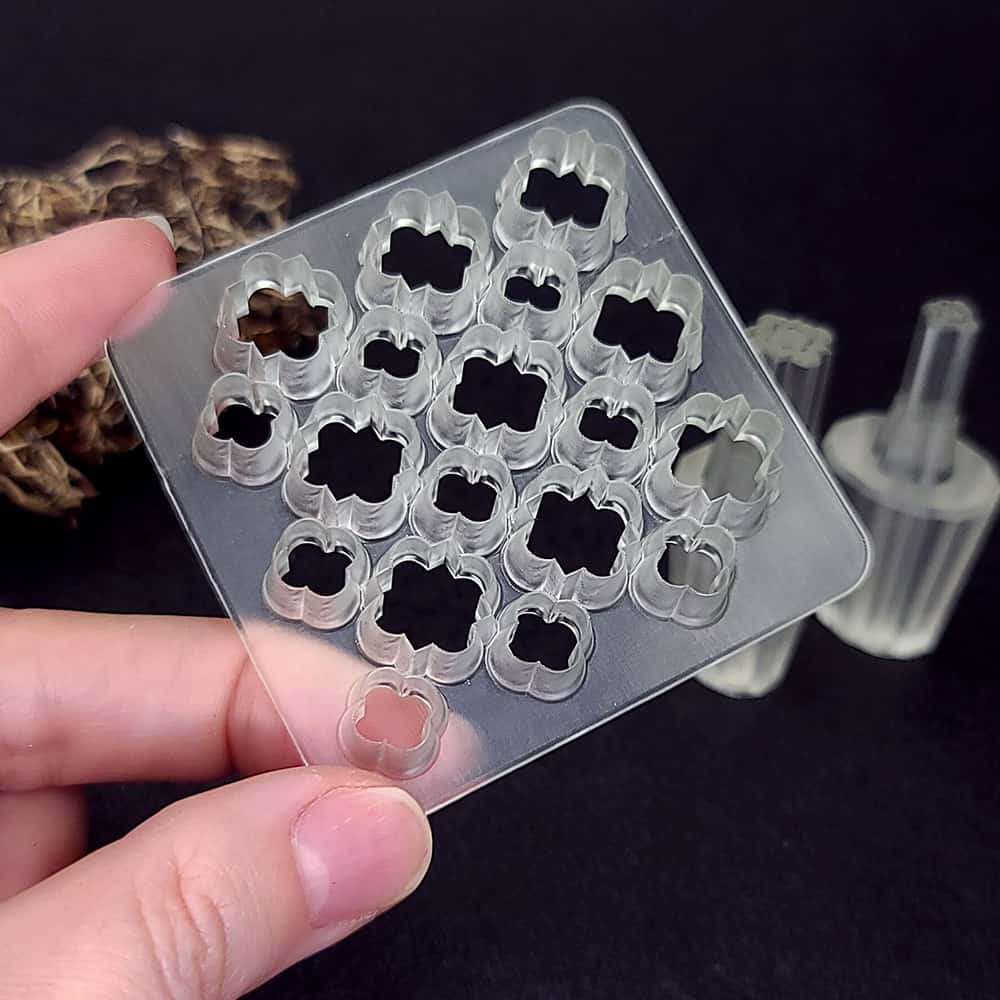 Sunrise in Marrakech cutters have ideally streamlined shapes to ensure your creations have even edges without additional post-processing. The cutters' surfaces are incredibly smooth, so you no longer have to clean them of the remains of polymer clay. To ensure maximum accuracy, each cutter is created from high-quality, innovative, transparent material, which creates a very thin cutting edge.