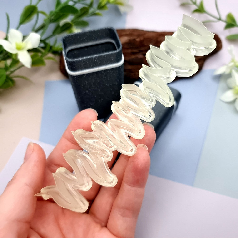 The possibilities with these tools are endless! You can use them to create cabochon settings or frames by combining different patterns or using just one. Additionally, you can craft unique designs by experimenting with various blade shapes, clay colors, and textures.