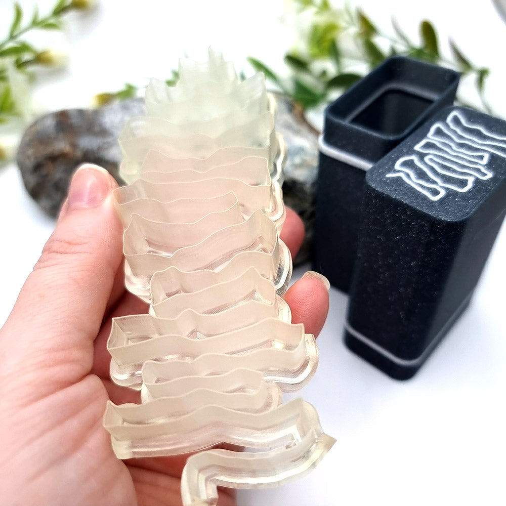 The possibilities with these tools are endless! You can use them to create cabochon settings or frames by combining different patterns or using just one. Additionally, you can craft unique designs by experimenting with various blade shapes, clay colors, and textures.
