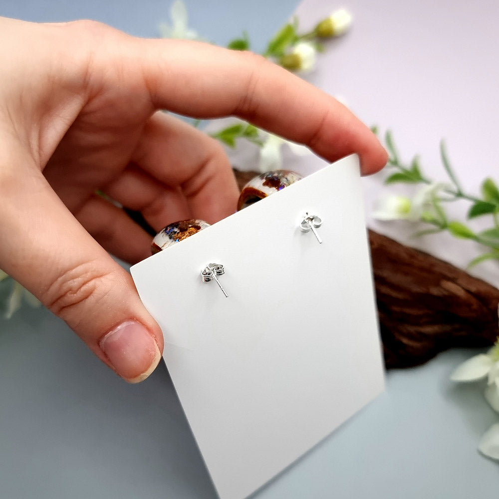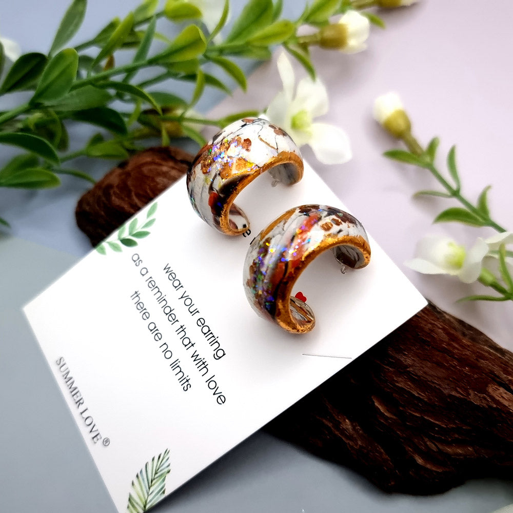 Huggie Earrings - Marble, Opal and Gold