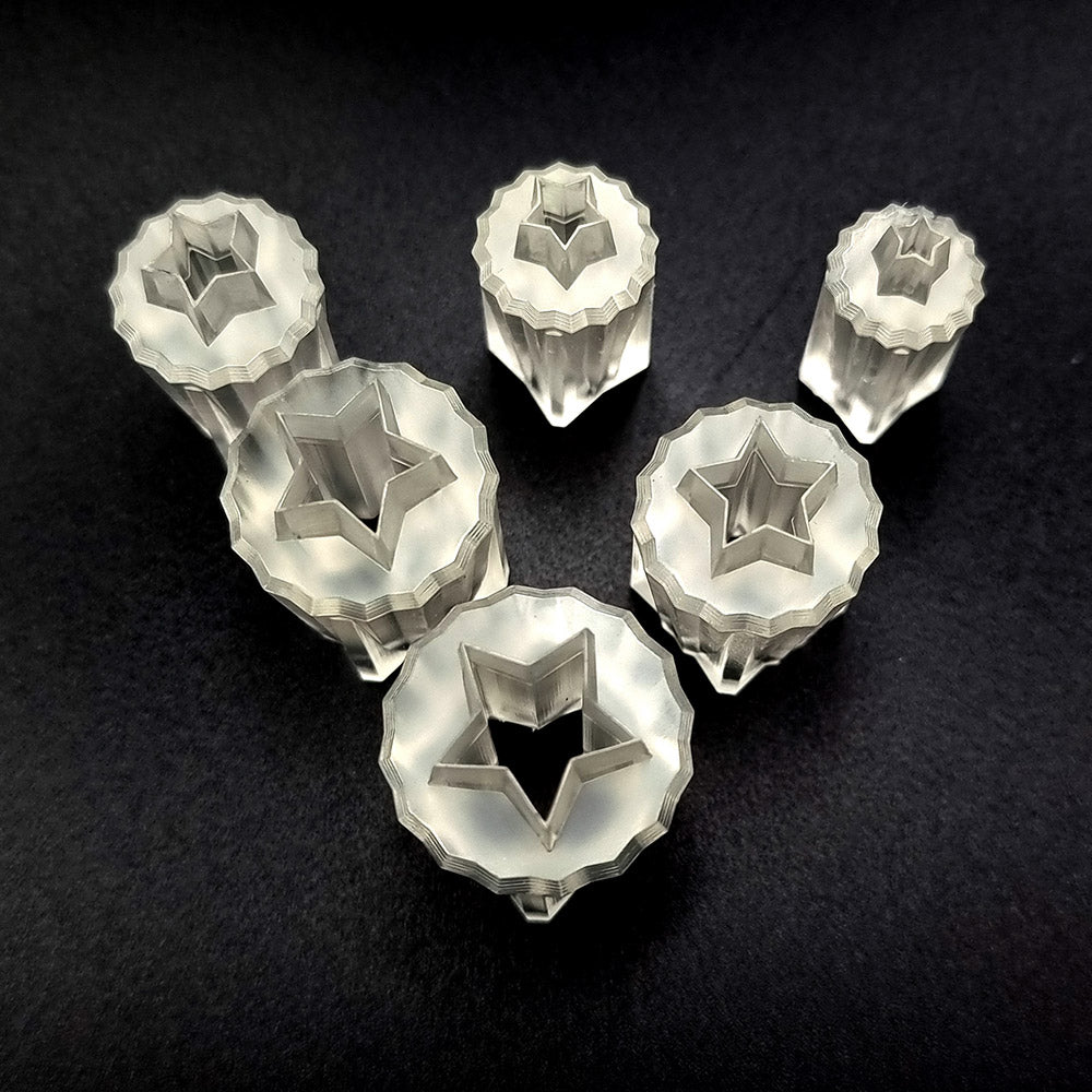 Nano cutters have ideally streamlined shapes to ensure your creations have even edges without additional post-processing. The cutters' surfaces are incredibly smooth, so you no longer have to clean them of the remains of polymer or metal clay. To ensure maximum accuracy, each cutter is created from high-quality, innovative, transparent material, which allows for the creation of very thin cutting edges.