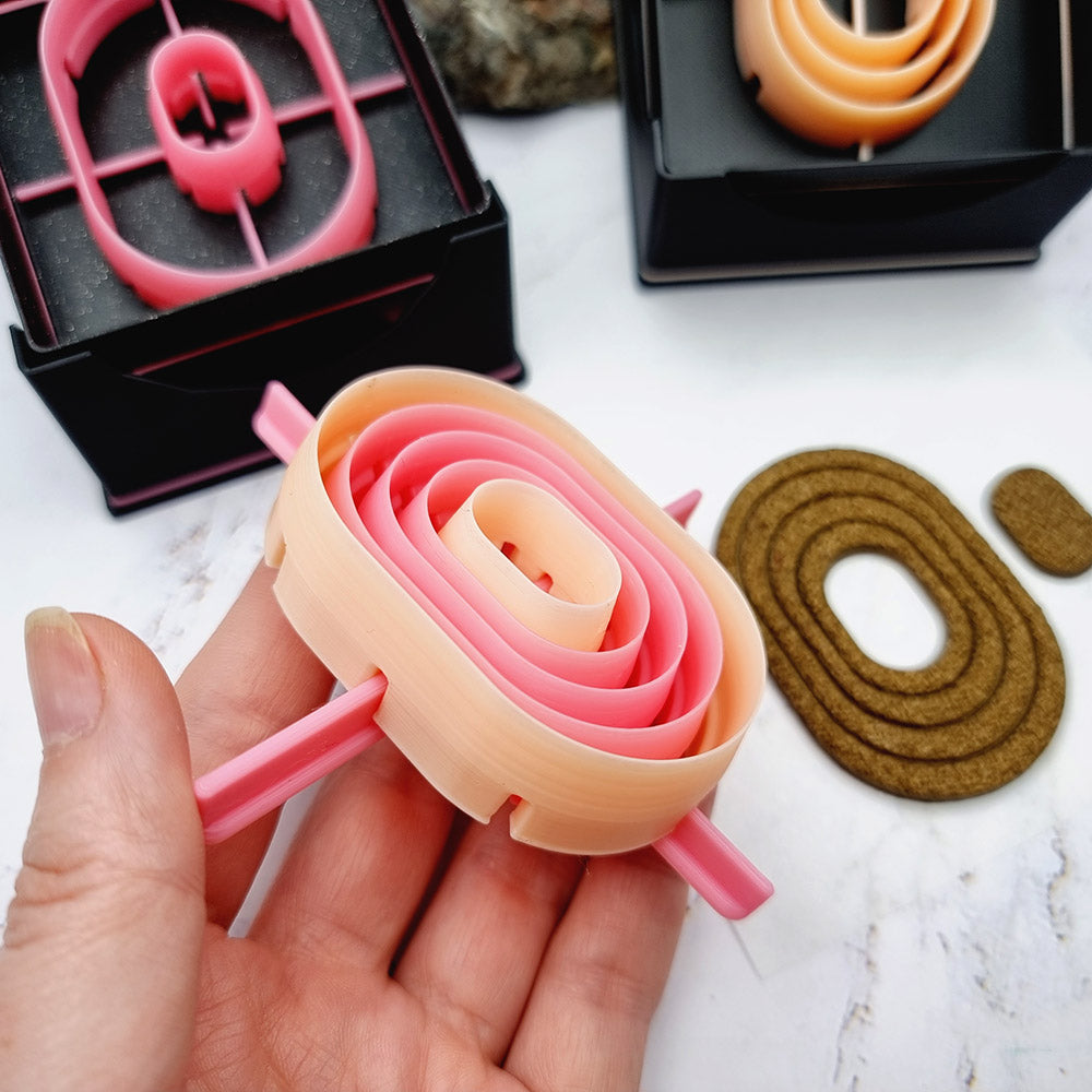 🔹 Used on its own, the pink cutter functions just like the Beige version, allowing you to cut out consistent, well-defined shapes with minimal effort. It’s ideal for creating base elements or uniform decorative pieces from polymer clay, metal clay, and other soft materials.