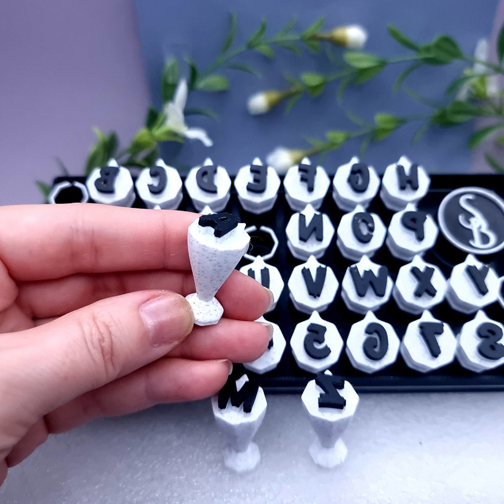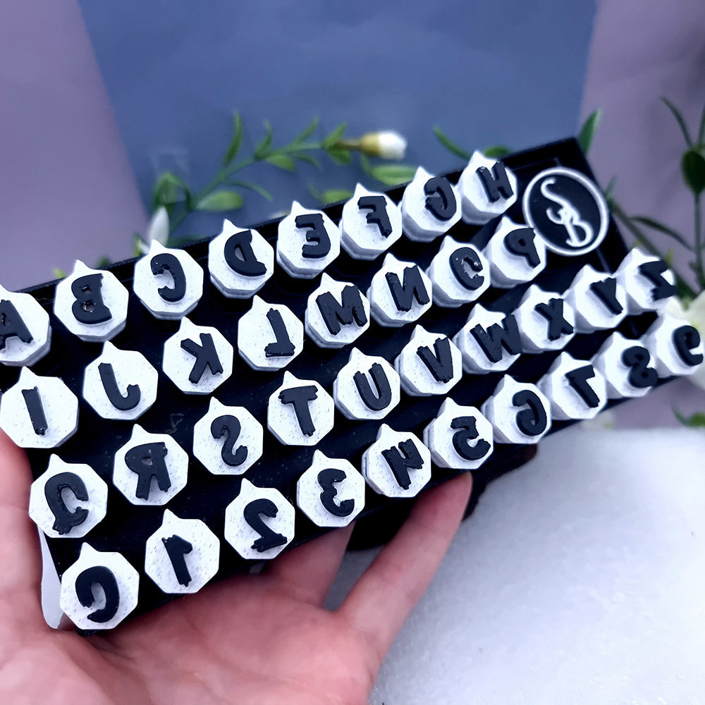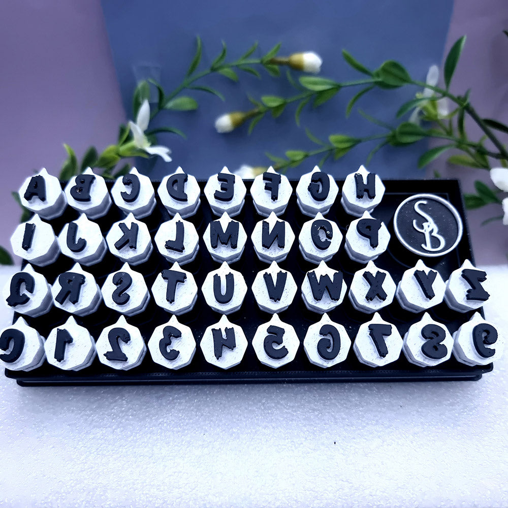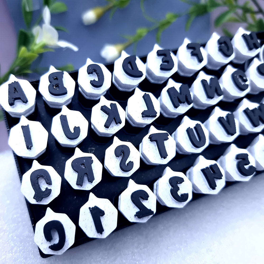 Unleash your creativity with our Halloween-themed Alphabet & Number Stamps set, featuring letters A to Z and digits from 0 to 9. Each symbol is meticulously crafted in a spooky Halloween style, measuring 10mm in size.
