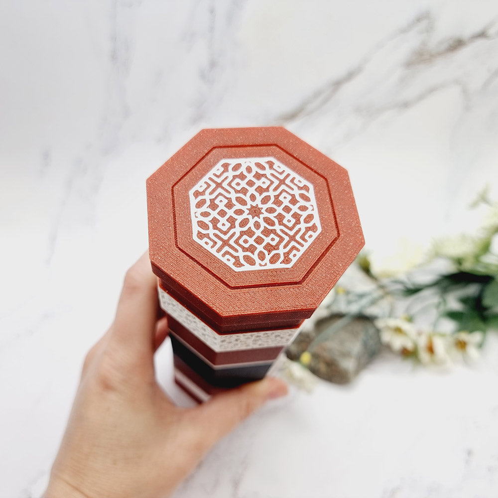 With its unique multi-faceted design and classical geometric patterns, this pencil case is more than just storage - it's a functional piece of art.