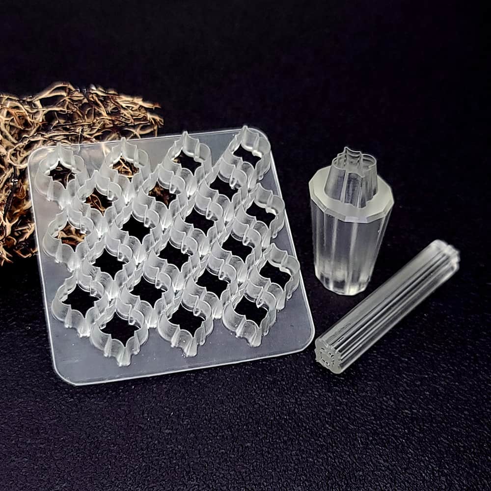 Sunrise in Marrakech cutters have ideally streamlined shapes to ensure your creations have even edges without additional post-processing. The cutters' surfaces are incredibly smooth, so you no longer have to clean them from the remains of polymer clay. To ensure maximum accuracy, each cutter is created from high-quality, innovative, transparent material, which creates a very thin cutting edge.