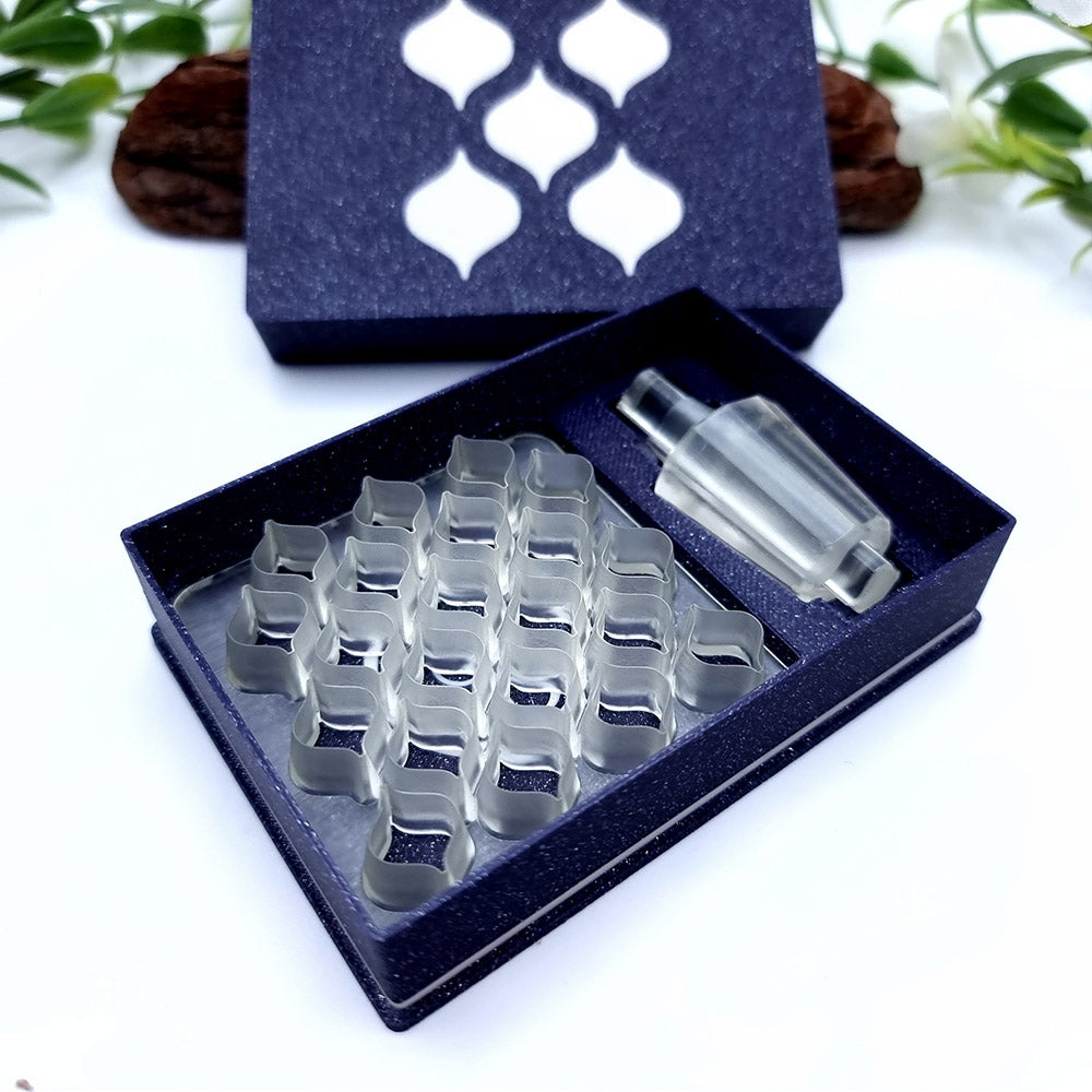 Sunrise in Marrakech cutters have ideally streamlined shapes to ensure your creations have even edges without additional post-processing. The cutters' surfaces are incredibly smooth, so you no longer have to clean them of the remains of polymer clay. To ensure maximum accuracy, each cutter is created from high-quality, innovative, transparent material, which creates a very thin cutting edge.